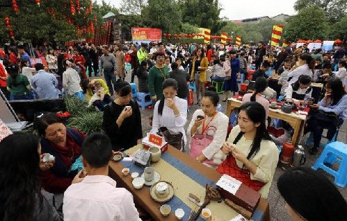 斗茶节首设“百家茶席” 天心岩茶村村主任林小荣告诉记者,天心村斗茶赛往年称为“斗茶赛”,今年“斗茶赛”改为 “斗茶节”。现场大红灯笼高高挂,全程三天音乐播放,还有真人现场表演、演奏。节日的气氛浓厚,整个茶节洋溢着浓郁的欢乐气息。 武夷茶素有“品种王国”的称谓,为了有效保护名枞,给其应有的席位空间,今年天心斗茶节在原有大红袍、肉桂、水仙三个系列的基础上,首次增加了名枞系列;从茶样量来看,送审茶样量为历年最多,共有757泡,且今年送样的茶叶品质也均衡。林小荣向记者介绍说。 在评审形式上,延续传统专家审评和大众审评结合形式,值得一提的是,本届大赛增加科班院校专家评审,同时注入年轻力量,本地资深茶人、地市专业评审、以及省上、科班专家联合,多年龄段不同味蕾品茶,体现了评审团队较高的综合素质。林小荣对记者说。 本届斗茶节首次增设“百家茶席区”,100家茶企摆出茶席,面对面与茶友、客商零距离沟通,传递茶文化。在谈到本届赛事的亮点时,林小荣表示,此次设立“百家茶席”,开始我们只是抱着尝试的心态,但在活动启动第二天,100个名额就被抢报一空。斗茶节过后,村民们纷纷赞叹“茶百席”可谓正能量之举,希望今后能将其一直延续下去。我们颇感欣慰,通过“百家茶席”,不仅满足农户、茶企的愿望,更让外界的广大茶友除了能品尝正岩茶的滋味之外,还可以看得见、触得着、感受得到武夷岩茶文化精髓。