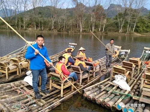 “九曲溪山美水美,不同天气的景色也不一样,我们干一行、爱一行、也专一行”,聊起工作,王文选特别自豪,“我今年56岁啦,除了公司日常安全和礼仪培训,我每天回家还习惯要看看新闻和诗词,比如‘七曲移舟上碧滩,隐屏仙掌更回看。却怜昨夜峰头雨,添得飞泉几道寒……九曲将穷眼豁然,桑麻雨露见平川……’朱熹写的多好,我们适时地来几句,雅俗共赏,游人都叹服呢。”朴实做人,用心做事的良好心态,加上专业的技能和风趣的解说,使得许多游人在短暂的旅程之后依然与筏工保持联系,成为朋友。