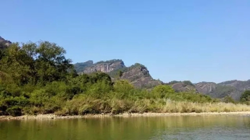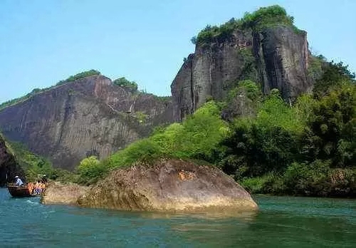一曲:凝望王者之峰 见过顶大腰小的山峰不?来九曲溪的“一曲”开开眼界吧~ 一曲在武夷宫前,晴川一带,是九曲溪的最下游,景色畅旷豁达。一曲溪水环绕之内,最有代表性的景点,就是大名鼎鼎的大王峰。