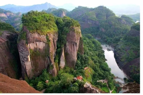 六曲是九曲溪中最短的一曲,但其景色又为最胜,被称为“武夷山第一胜地”的天游峰即在此。 六曲北岸苍屏峰下有水流迅疾的“松鼠涧”。 沿溪上行500米即可到达武夷洞天佳境的桃源洞,宋代陈石堂、吴正理等曾隐居在此。真是地灵人杰呐。 六曲主要景点有:天游峰、晒布岩、仙掌峰、响声岩。