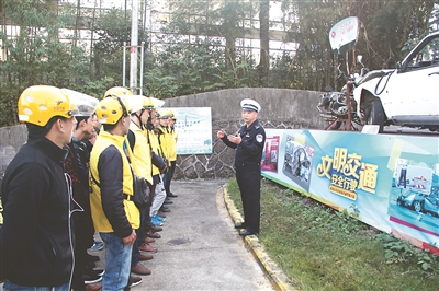 武夷山市公安局交警大队组织外卖快递员开展交通安全宣传