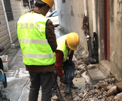2018年春节将至,为保障我市城区居民度过一个喜庆祥和的春节,按照市政府为民办实事及“四比六促”再攻坚的要求,市自来水公司布置了详细方案,对武夷新村、岩发路、岩福路三片区水压水量不足地段供水管网进行改造维护,该工程投入资金约200万元,公司员工冒着风霜雪雨加紧施工,解决了860多户居民的供水压力不足问题,让居民用上满意水,确保春节期间安全供水。
