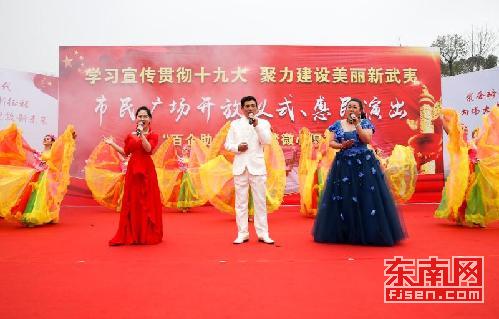 2月10日,武夷山市非遗展演中心在市民广场载歌载舞庆祝市民广场建成开放。武夷山市民广场是武夷山市为民办实事建设项目,该广场占地151亩,总投资5.68亿元,总建筑面积63800平方米。
