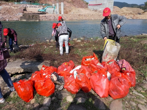 水利局党员志愿者分别在西溪、九曲溪和崇阳溪与石雄社区、崇安街道办和星村镇的志愿者们,一道捡拾河道垃圾,打扫河道环境卫生。