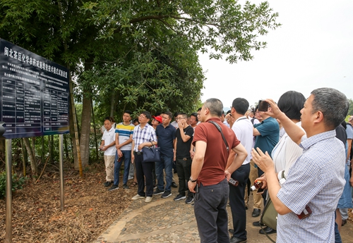 6月13日,参加全国“茶园化肥农药减施增效技术集成研究与示范”项目现场会的代表在武夷山戏球茶业有限公司岩茶基地参观。