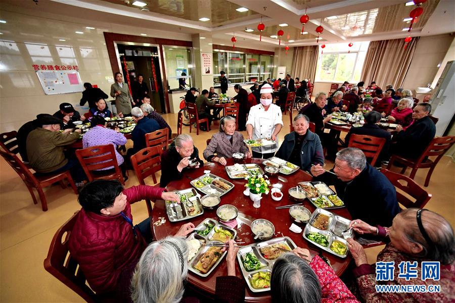 11月1日,老人在武夷山社会福利中心吃晚餐。  新华社记者 张国俊 摄