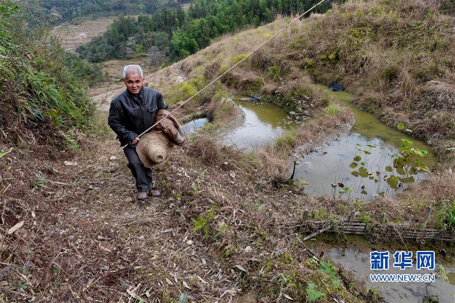 11月28日,在武夷山市岚谷乡后山村,肖流标行走在放养家禽的路上。新华社记者 张国俊 摄