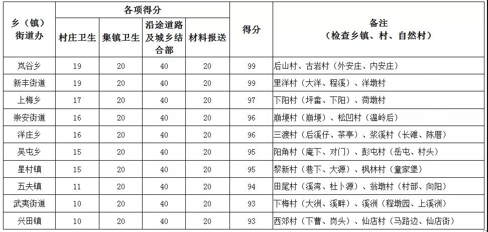 日前,武夷山共建办发布《“万人保洁”工作11月考评情况通报》,通报了各乡(镇)、街道办、农茶场、公路局以及交通局的考评情况,岚谷乡、新丰街道并列第一,兴田镇、武夷街道、五夫镇排行倒三。 市共建办根据2018年南平万人保洁工作考评办法及《武夷山市2018年“万人保洁”工作专项考评办法》(武政办〔2018〕57号)的要求,市共建办于11月19-23日组织考评督查组对各乡(镇)、街道办、农茶场、公路局、交通局等保洁责任区进行随机抽查考评。本次考评检查中存在的问题如下: 乡(镇)、街道办方面 崇安街道:崩埂村3处零星垃圾;松凹村1处零星垃圾。新丰街道:里洋村1处零星垃圾。武夷街道:下梅村6处零星垃圾;溪洲村1处零星垃圾。星村镇:黎新村4处零星垃圾;枫林村1处零星垃圾。五夫镇:田尾村4处零星垃圾;翁墩村2处零星垃圾。兴田镇:西郊村4处零星垃圾;仙店村3处零星垃圾。上梅乡:荷墩村1处零星垃圾;下阳村2处垃圾。岚谷乡:后山村1处零星垃圾。吴屯乡:阳角村2处零星垃圾;彭屯村3处零星垃圾。洋庄乡:三渡村2处零星垃圾;浆溪村2处零星垃圾。 本月考评中,兴田镇西郊村岗头自然村路面保洁情况较好,但村头小溪内仍有倾倒垃圾;武夷街道下梅村溪畔自然村河边竹林多次检查中皆发现有垃圾;五夫镇田尾村溪湾自然村垃圾日常保洁不到位,清运不够及时。 公路、交通及农茶场方面 本月公路局沿途卫生保洁到位,望继续保持良好态势;交通局需加强公路沿线两侧至外延2米内的日常保洁巡查工作。华侨农场、茶场、综合农场、良种场需加强辖区范围内的卫生保洁,落实好日常保洁长效机制。 市共建办要求,下阶段各乡(镇)、街道办、农茶场、公路局、交通局要认真对照我市2018年“万人保洁”考评办法,明确职责,认真分析自身环境整治卫生保洁方面存在的薄弱环节,针对性采取相应措施,按时保质保量完成相关工作。尤其要高度重视和加强卫生保洁工作,落实好每月乡镇对村级的考评机制,切实执行对村级的考评奖惩制度,加大对自然村的保洁力度,促使卫生保洁工作全面提升。 |
