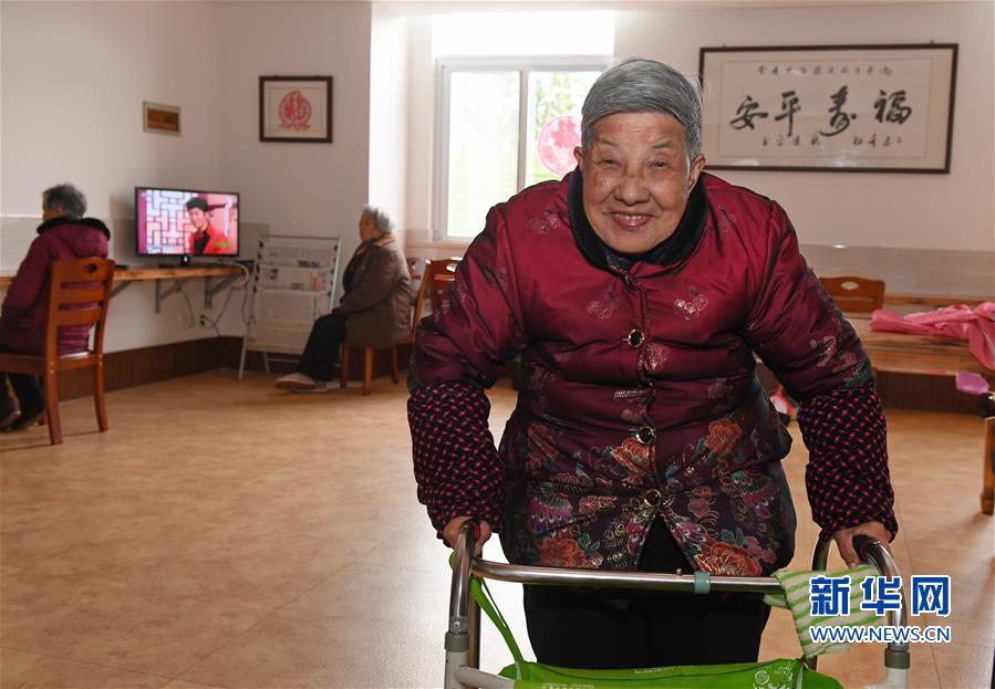 2月9日,87岁的老人徐月莲在武夷山市社会福利中心活动。