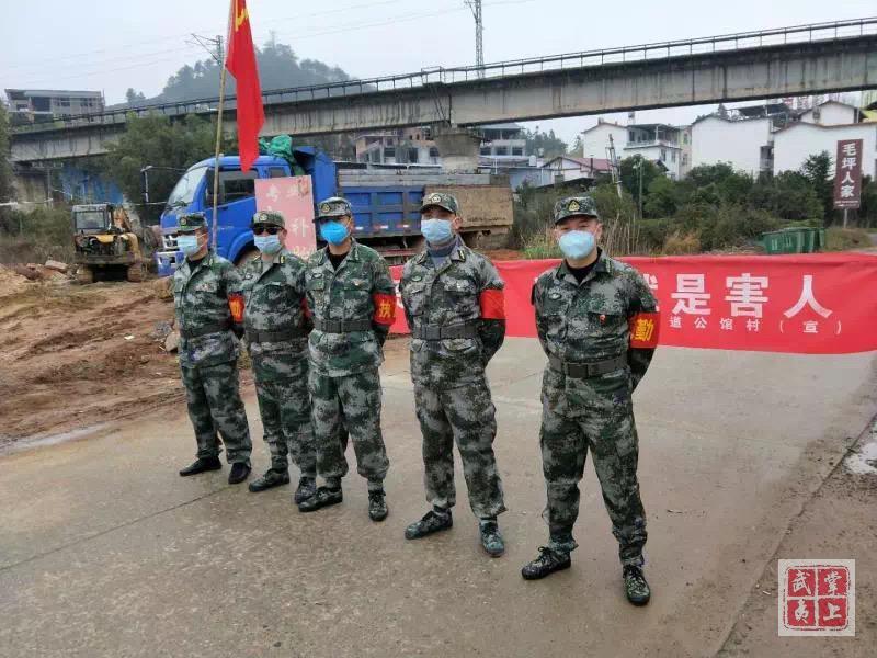 武汉新冠肺炎疫情爆发后,为防止疫情扩散,最大限度降低疫情风险,公馆村民兵们积极响应党组织号召,自发组成抗击疫情队伍。他们放弃与亲人团聚,不顾自身风险,一桶泡面,一个口罩,坚守在各执勤点、农贸市场、大街小巷等疫情一线。