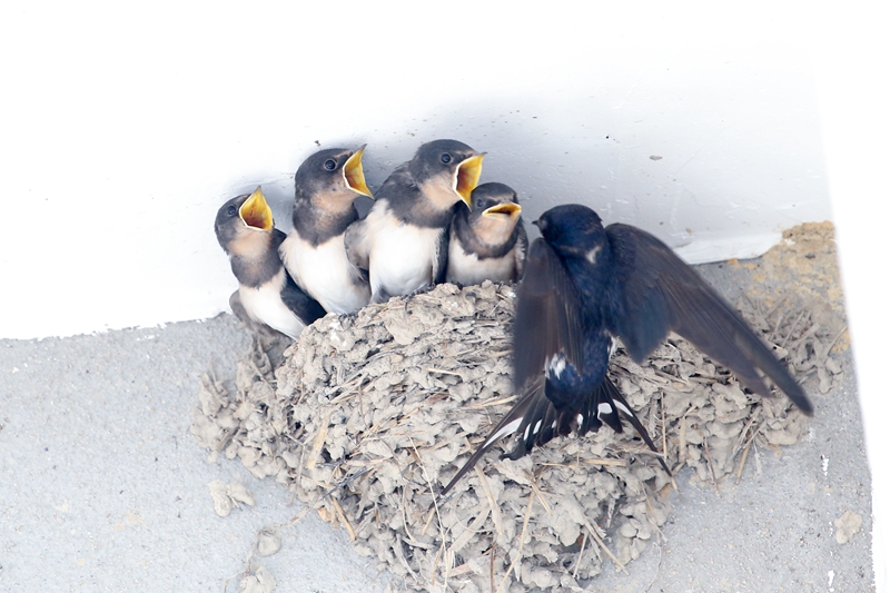 东南网讯 6月2日,在武夷山市兴田镇西郊村,母燕给雏燕喂食。