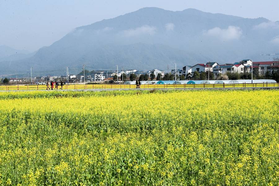 冬去犹存千岭绿,春来又是万山黄。早春二月,五夫镇的500亩油菜花田进入盛花期,金灿灿的油菜花争相绽放,吸引周边游客春游赏花。(邱汝泉)