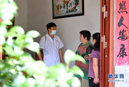 8月18日,杨家福在武夷山市上梅乡厅下村向村民讲解健康知识。新华社记者 林善传 摄