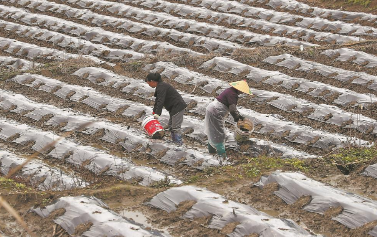 12日,武夷山市上梅乡下阳村村民在高标准农田春耕备耕。立春以来,武夷山市各乡(镇)村民早早下地,掀起春耕备耕热潮。邱汝泉 摄