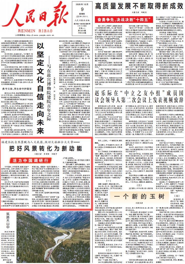 10月9日,人民日报头版“活力中国调研行”栏目刊发报道《把好风景转化为新动能》,点赞福建省依托独特的自然禀赋与深厚的人文底蕴,加快推进文旅融合,把“好风景”转化为“新动能”,为文旅经济注入澎湃活力。