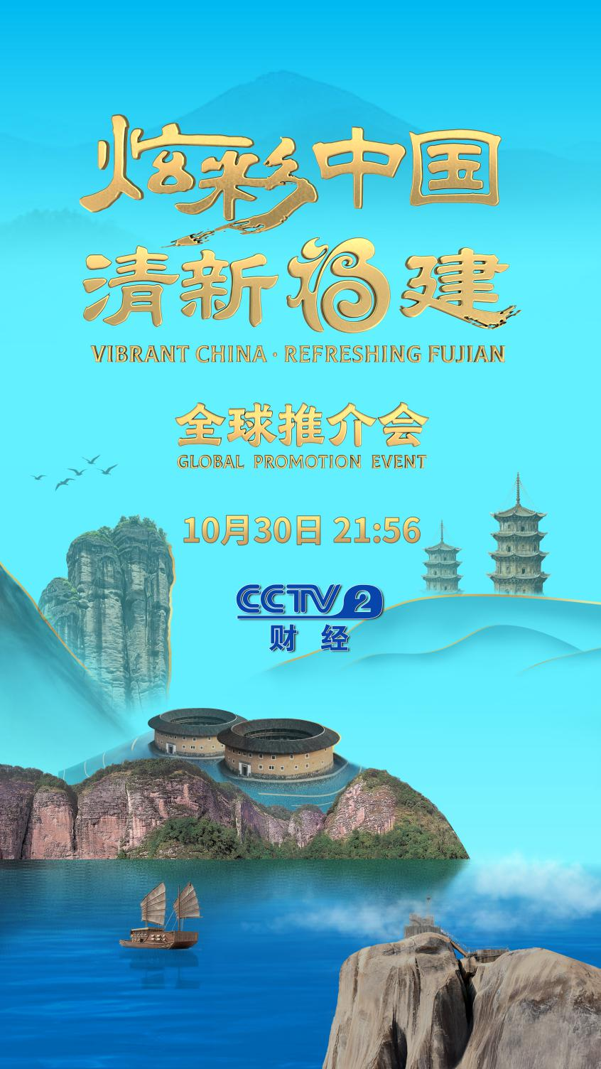 由中央广播电视总台与 福建省人民政府联合主办的 “炫彩中国·清新福建” 全球推介会的精编版一一 《炫彩中国 清新福建》节目 将于10月30日21:56档 在总台央视财经频道(CCTV-2)播出 将带您感受“清新福建”的 山水之美、人文之美、烟火之美