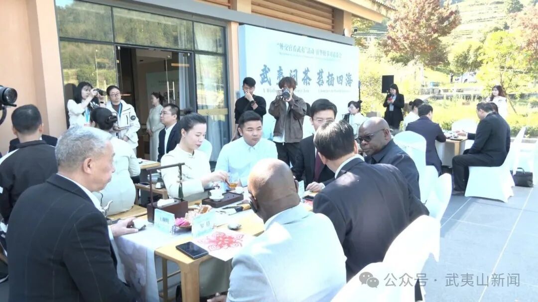 在“武夷问茶 茗扬四海”驻华使节对话茶会环节,驻华使节们与相关领导及当地茶人代表面对面交流,围绕茶旅融合发展、武夷茶的国际传播、“三茶”统筹发展等议题展开热烈交流分享,以茶为媒,共商茶事,共谋人与自然和谐共处之道。