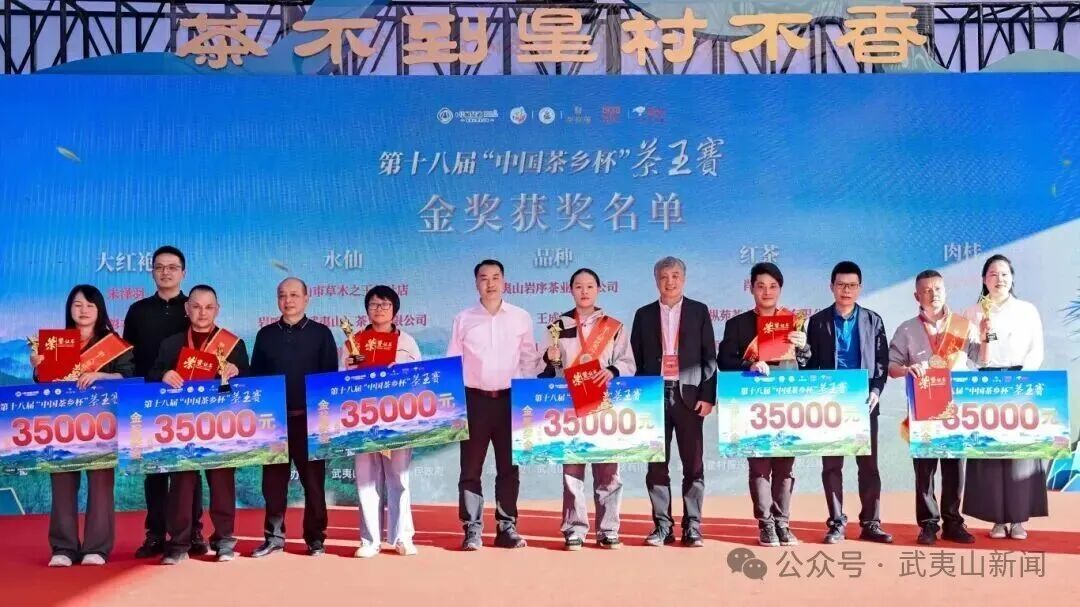 本届茶王赛总计收到参赛茶叶样品1895个,创历届“中国茶乡杯”茶王赛新高。经过初赛、复赛的层层选拔,最终9位专家评审和数百位大众审评共同评选出水仙、肉桂、大红袍、品种、正山小种5个系列的茶王5名、金奖15名、银奖30名、优质奖60名。