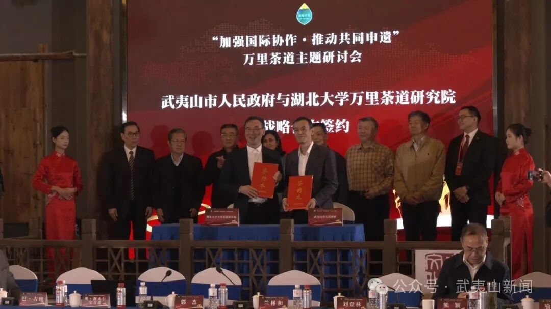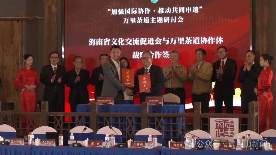 现场还举行了多项战略合作签约仪式,包括“海南省文化交流促进会与中华文化促进会战略合作”“武夷山市人民政府与湖北大学万里茶道研究院战略合作”“中国网中国优选与万里茶道协作体深化合作”,并同步发布“加强国际协作、推动联合申遗”武夷山共识。
