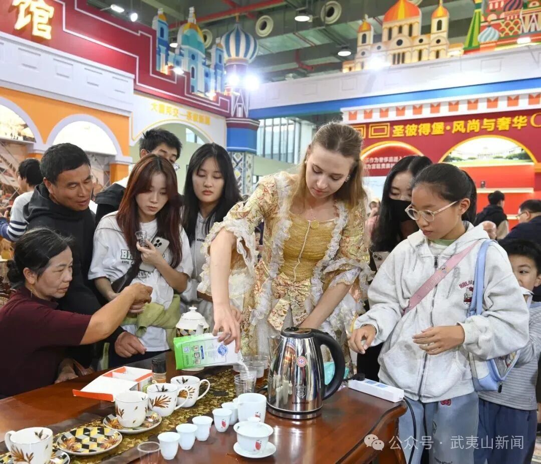 市民游客在俄罗斯馆品尝原汁原味的奶茶(张行健 摄) 赋能跨区域协作,参加“加强国际协作,推动共同申遗”万里茶道主题活动的俄罗斯科技东方有限公司代表斯黛拉说:“万里茶道,它不仅是一条商贸之路,更是一座文明互鉴的桥梁。”