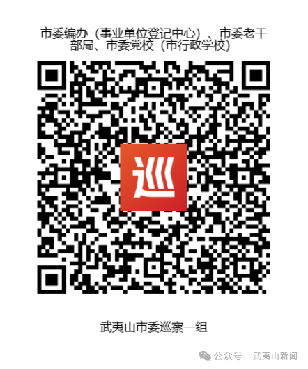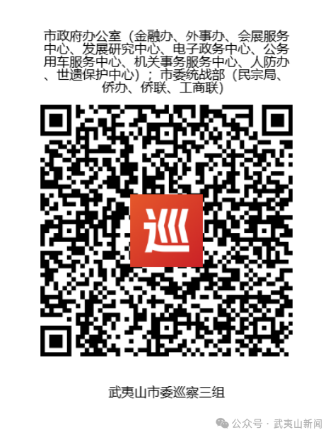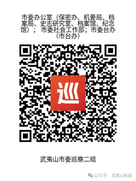 本轮巡察的信访举报同步启用“码上巡”小程序,干部群众可用手机扫描对应的被巡察单位下方的“码上巡”二维码提交信访举报问题。欢迎广大干部群众实事求是地反映问题、提供线索,并对巡察组工作予以支持和监督。 中共武夷山市委巡察工作领导小组办公室 2025年12月8日 |