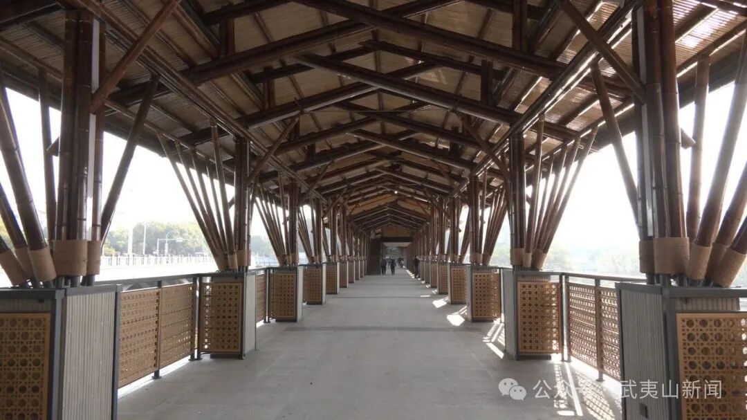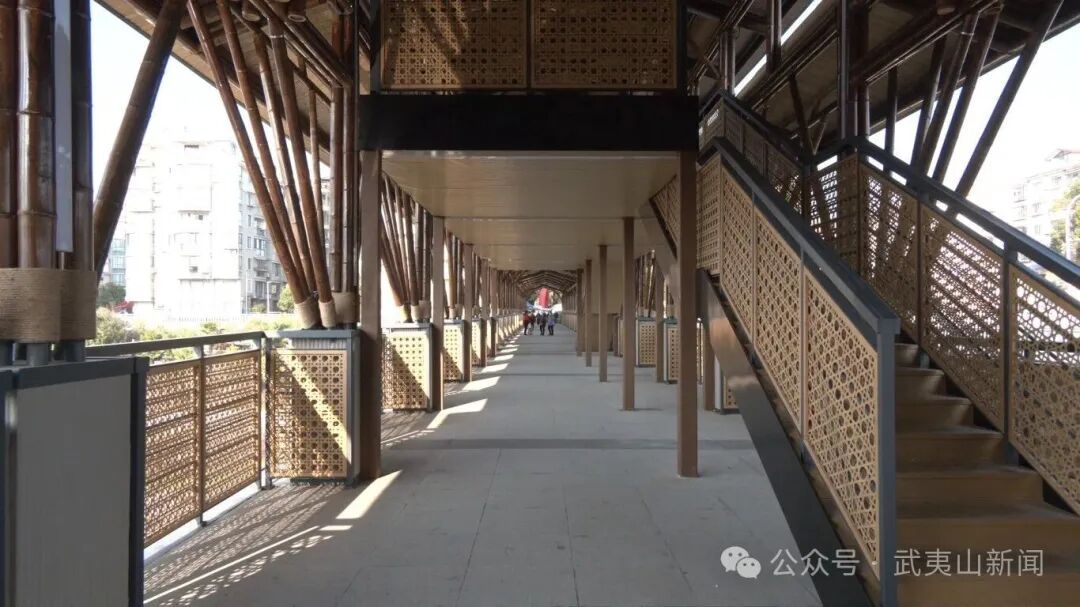 北京中竹文化科技有限公司设计总监张乾说:“我们采用传统与现代的结合,突破了传统廊桥的那种直直一个廊道的形式,把它做成了分层处理,还有一个山势的形态,象征了武夷山。”