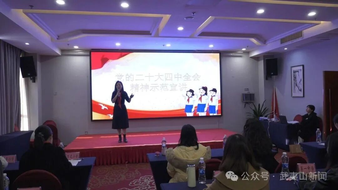 培训课上,南平市少先队副总辅导员吴丹妮宣讲党的二十届四中全会精神,以《少先队基础工作实务》为专题,从少先队员基础知识和仪式教育、少先队活动课、少先队重点工作、少先队技能大赛四个方面展开授课,并开展心理健康知识专题辅导和少先队基础知识测试,加强授课知识的巩固。