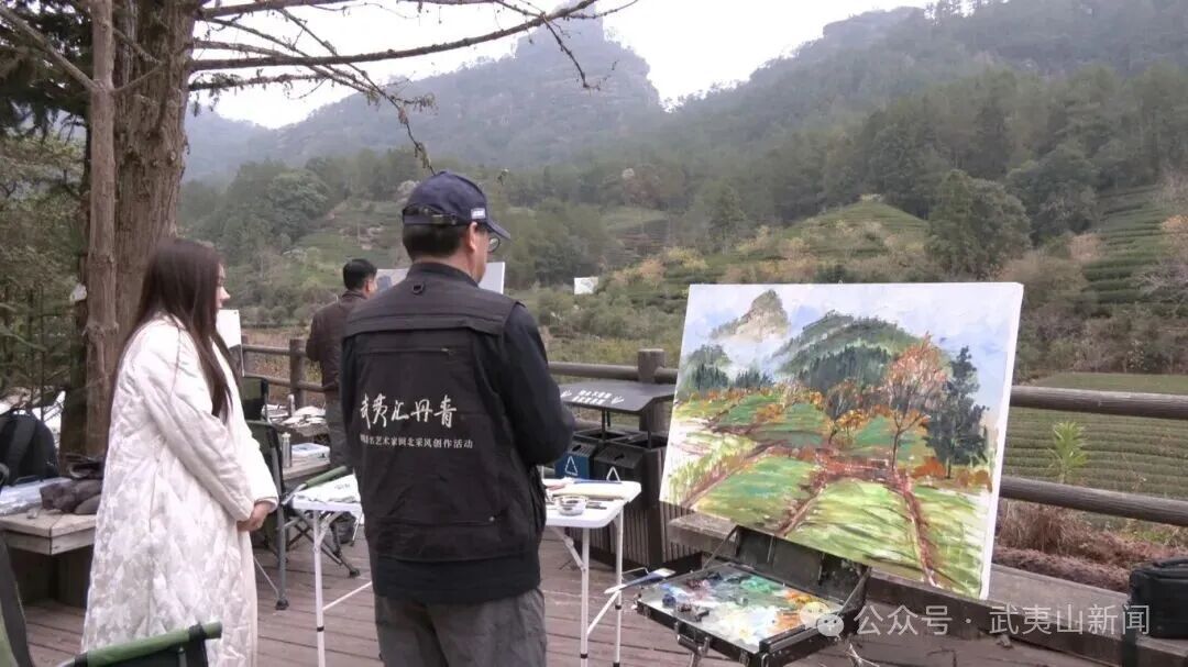 艺术家们先后走进燕子窠生态茶园、九曲溪等地进行采风创作,他们不仅将茶山叠翠的景致与茶文化的深厚底蕴凝练成笔下的创作灵感,也通过手中的画笔定格溪水潺潺、丹山碧水相映成趣的诗意画面。