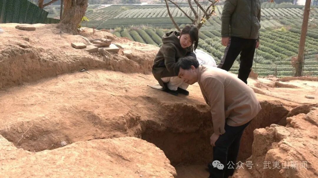 在竹林坑窑址核心区域,两座洞穴式窑炉静卧于山坡之上。新发掘的窑炉位于原有窑炉东侧,是一座结构更为原始、年代更为久远的长条形龙窑。福建省考古院副院长、竹林坑窑址考古发掘领队羊泽林、复旦大学科技考古研究院院长郑建明带队在现场进行细致勘察、详实记录,为后续考古工作做好准备。