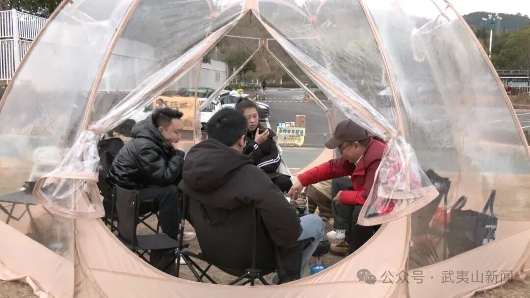 漫步在崇阳溪漫游道,清澈的溪水缓缓流淌。趁着连日来的暖冬天气,市民朋友们三五成群,或携家带口、或约上好友结伴而来,各寻其乐。有人寻一处平坦的草坪,取出茶具煮水泡茶,茶香袅袅间,大家围坐一圈,聊着家长里短,说着生活趣事。有人则沿着步道缓步慢行,与身旁的同伴唠家常,享受这份冬日里的“慢时光”。
