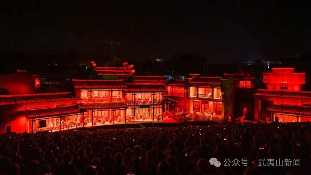 作为张艺谋、王潮歌、樊跃“印象铁三角”匠心打造的经典之作,《印象大红袍》扎根武夷山碧水丹山之间,依托全球首创的360°旋转观众席,将自然山水、非遗文化与现代科技深度融合,自2010年首演以来,已累计吸引超940万观众前来打卡。2025年,演出团队坚持内容为王,对采茶劳作、红竿竞技、唐风雅韵等核心桥段精雕细琢,升级水筛表演的光影特效与动作编排,让武夷茶文化中“天人合一”的精神内核得到更鲜活的诠释。节假日期间,演出场场爆满,曾创下连续3天单日加演至5场的纪录,即便凌晨场次依旧座无虚席,其中外地游客占比超五成,不少海外旅行团更是专程慕名而来。