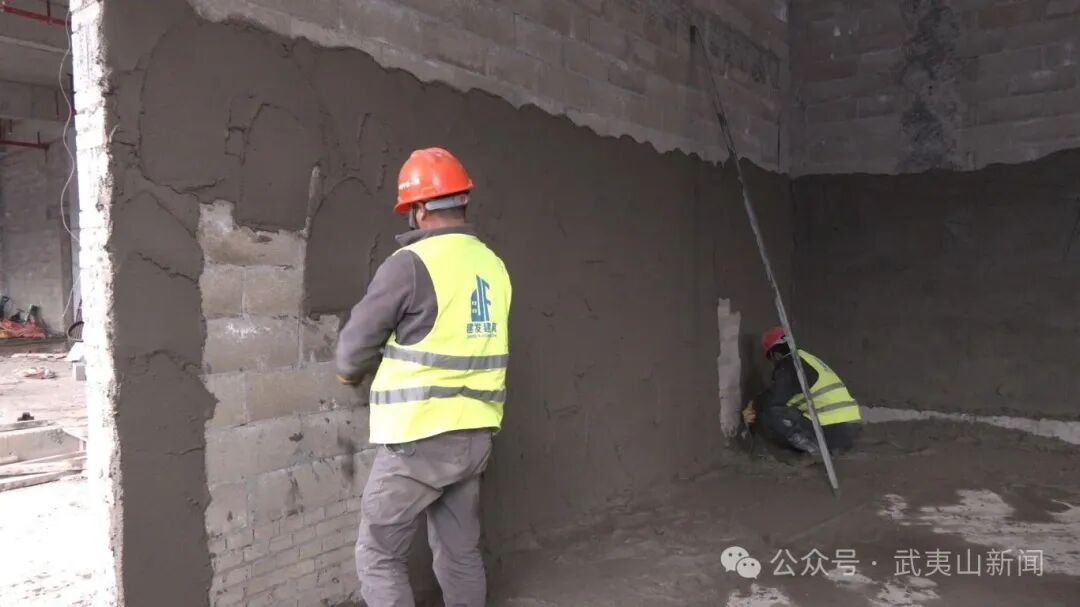 6日,走进施工现场记者看到,一幢幢大楼已初见规模,一旁的钢筋、瓦片等建材整齐码放。工人们有的专注开展墙体砂浆粉刷作业,有的加紧推进梁板钢筋预制及安装工作,现场一派繁忙的施工景象。