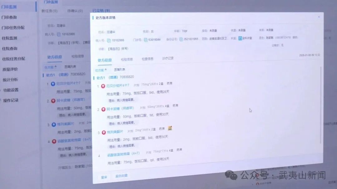 在武夷山公立总医院区域审方中心,记者看到,系统实时接收到一张新处方后,智能审方系统自动研判,仅3秒后便发出提示:“药品剂量超过常用量”的提示。审方中心药师初审后驳回处方,并提请医师修正。开方的卫生院医生及时调整并重新提交,经药师复核无误,系统亮起“审核通过”指示灯,处方随即进入流转环节——全程不超过3分钟。