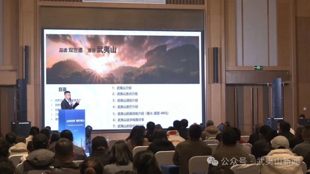 活动中,来自武夷山的行业代表分享了《武夷山2-3天玩转攻略》,将核心景区特色、完善的文化旅游配套与山水风光、茶旅文化、徒步体验深度融合,推出多款定制化团建线路,为行业线路规划提供了生动案例。
