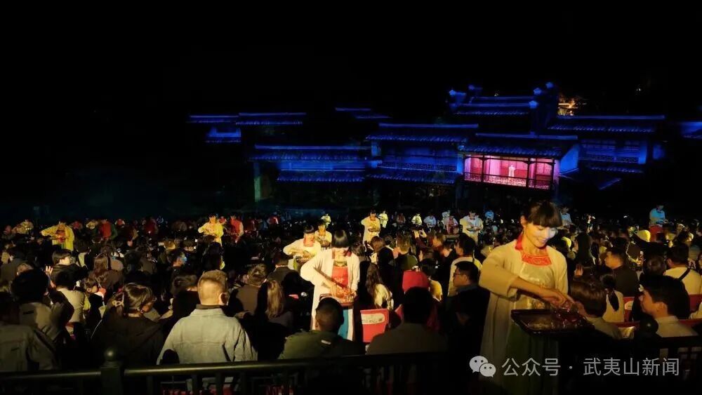 夜幕降临,武夷山市依旧生机盎然,温润的光影为茶乡的冬夜添加了暖意。大型山水实景演出《印象大红袍》将自然山水与茶文化深度交融,以沉浸式演出传递武夷山深厚的人文底蕴;《月映武夷》生动勾勒了朱子文化的历史脉络,即便冬夜微寒,仍吸引众多游客专程前来观赏。演出结束后,不少游客仍沉浸于演出氛围之中,信步于崇阳溪漫游道,细品夜色茶韵。