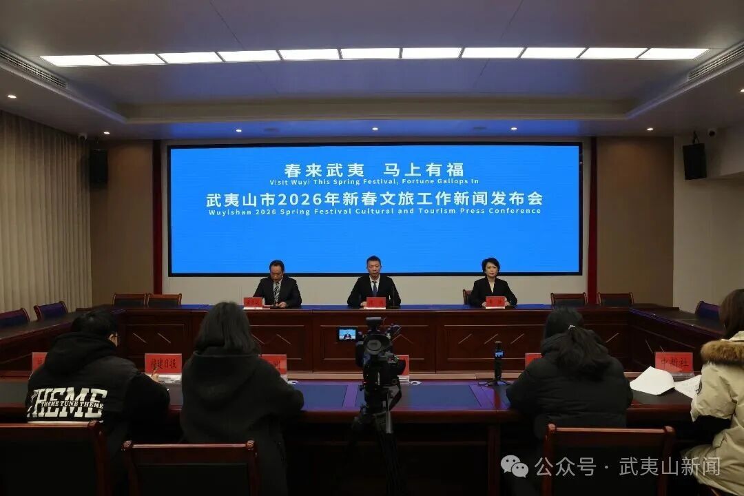 1月23日,武夷山市召开“春来武夷 马上有福——欢迎来武夷山过茶味中国年”2026年新春文旅工作新闻发布会,发布春节假日旅游暖心服务及特色活动有关情况。