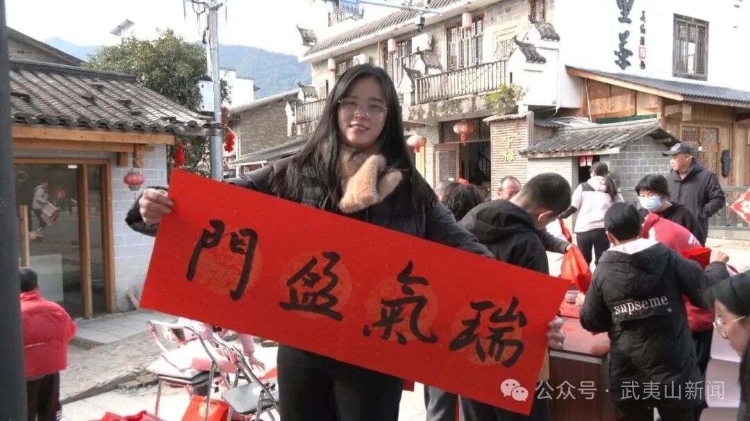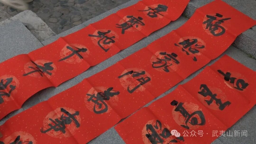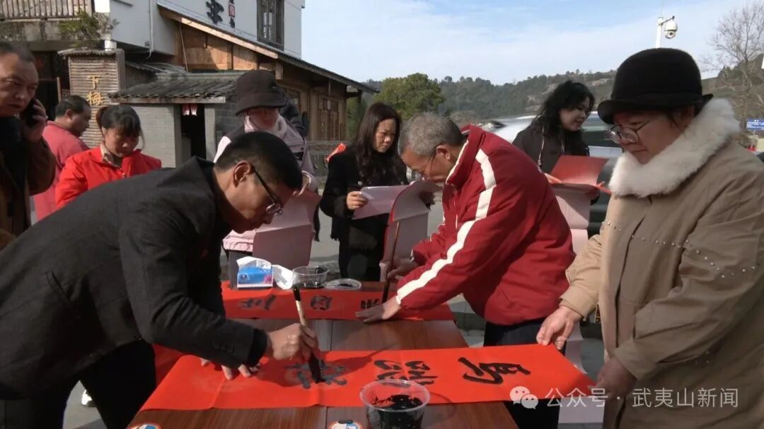 活动现场暖意融融、年味十足。红纸铺展、墨香四溢,书法家凝神提笔、挥毫泼墨。村民们则围在桌前,精心挑选心仪的春联。