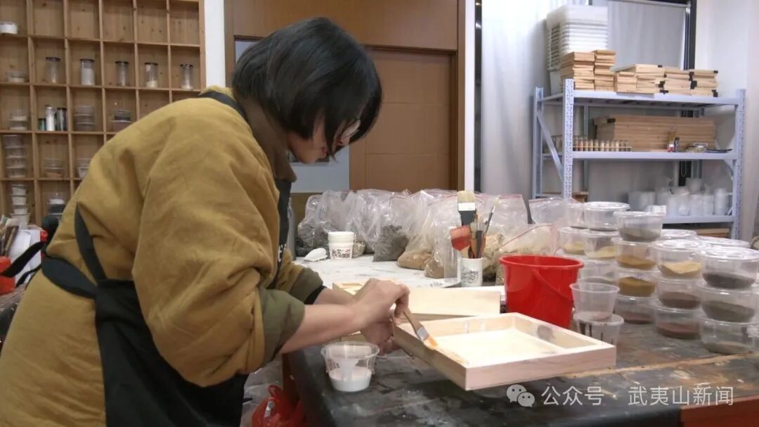 武夷岩彩入选第六批武夷山市级非物质文化遗产推荐名录,以武夷山多彩岩土为原料,融合地域特色与现代审美,以“本土材料讲本土故事”,焕发出新的文化活力。