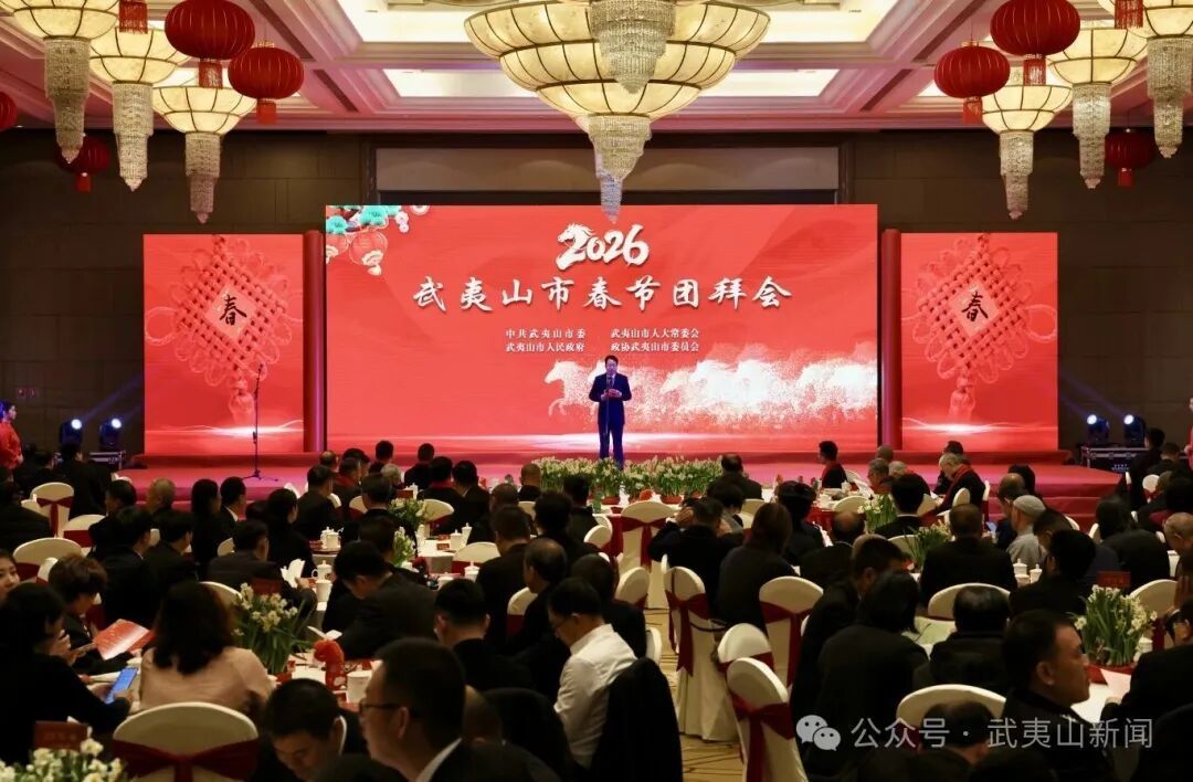 金蛇辞岁留瑞气,骏马迎春踏新程。2月13日上午,2026年武夷山市春节团拜会举行。武夷山市委书记杨青建代表市委、市人大常委会、市政府、市政协,向全市人民拜年,向所有关心支持武夷山发展的各级领导、各界朋友表示衷心的感谢,并致以新春的美好祝福!市委副书记、市长余洲,市人大常委会主任林方,市政协主席裴福海,市委副书记吴平西出席。 杨青建在致辞中说,过去一年,是实干奋进的一年,全市GDP增长5.7%,县域旅游进入全国百强县前20,茶产业产值、税收分别增长13%、10%;是实干争先的一年,河长制、林长制工作获省级正向激励,成功创建全国文明城市,实现全国双拥模范城“四连冠”,入选首批全国美丽乡村先行区;是实干创新的一年,11项案例入选国家级、省级改革创新案例,创新高效办好茶旅产业“一类事”机制入选全国地方进一步全面深化改革创新实践重点研究名单;是实干为民的一年,32项为民办实事项目全面完成,崇阳溪漫步道、滨水茶足径全线贯通,入选全国县级城市体检试点、全国中小学科学教育实验区。这些成绩的取得,根本在于习近平总书记领航掌舵,在于习近平新时代中国特色社会主义思想科学指引,是全市广大干部群众勠力同心,一道拼出来、干出来的结果。 杨青建指出,新的一年,要以忠诚之心把准前行方向,在融入大局中明定位、担使命,确保党中央决策部署和省委、南平市委工作要求在武夷山落地见效;要以争先之志勇攀发展新高,在深化改革、营商环境、文旅经济、“三茶”统筹、城乡融合、项目攻坚等重点领域当先锋、打头阵;要以创新之力增强发展动能,持续深化重点领域和关键环节改革,打造更多具有武夷特色的标志性改革成果;要以惠民之举擦亮幸福底色,用心用情解决好群众身边的“急难愁盼”问题,让幸福武夷的底色更加鲜亮。山海寻梦,不觉其远;前路迢迢,阔步而行。我们要更加紧密地团结在以习近平同志为核心的党中央周围,在省委和南平市委的领导下,“一马当先”勇于闯、“策马扬鞭”敢于拼、“万马奔腾”善于干,在中国式现代化建设中奋勇争先,奋力谱写新征程新武夷建设新篇章。 祝武夷山事业龙马精神、骏业日新!祝全市人民和各界朋友新春快乐、阖家幸福、万事如意! 在武市委、市人大常委会、市政府、市政协领导,处级干部,市法院院长、市检察院检察长,处级老同志,驻武部队领导,市直有关单位主要负责同志,社会各界人士代表等出席。(记者 李健 徐超 吕峰 易幽梦) |