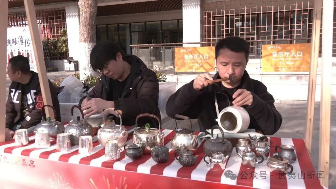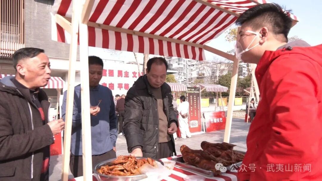 活动现场年味十足,特色非遗集市备受欢迎。岚谷熏鹅香气四溢,建窑建盏古朴精致,凤凰蛋工艺精巧,一众武夷本土非遗项目集中亮相,市民驻足观赏、体验品尝,在传统技艺中感受地道年味。