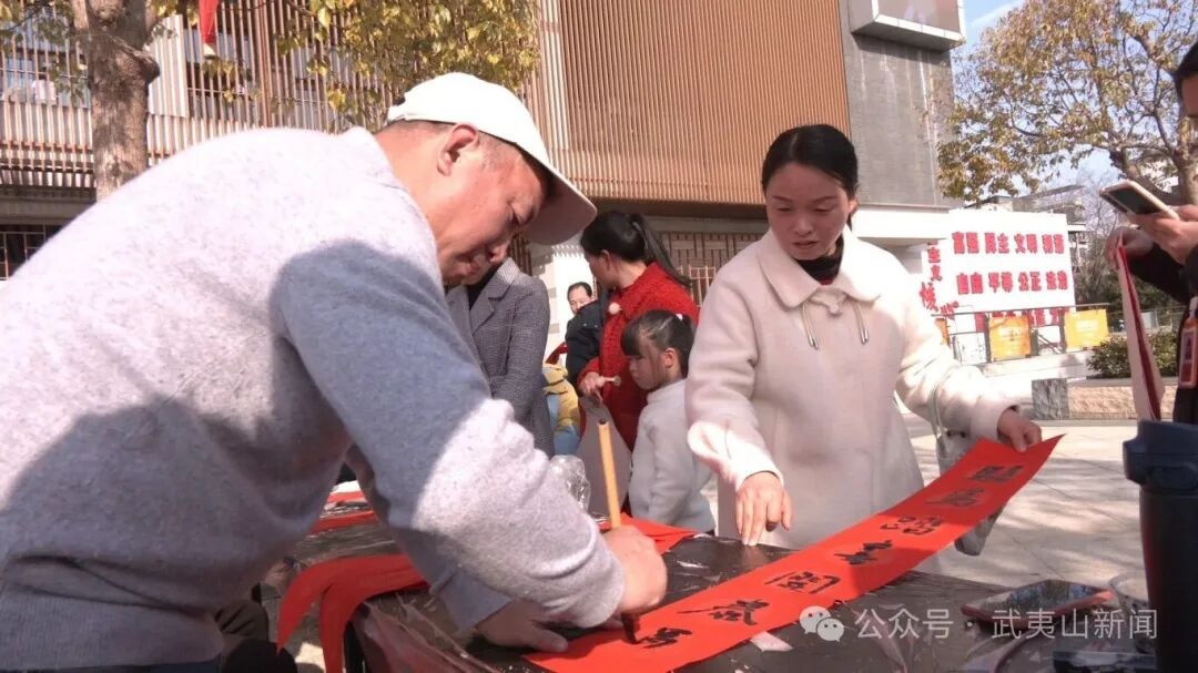 另一旁,书法家们现场挥毫泼墨,红纸铺展,行云流水间将新春祝福凝于笔端,一幅幅喜庆的春联、一句句吉祥的寄语,传递着浓浓的年味与真挚的新春祝愿,现场暖意融融、欢声笑语不断。
