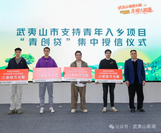 活动现场集中推介环带优质资源项目,发布青年入乡数字地图,直观展现乡村创业场景、优质就业岗位与未来发展空间;团市委全面解读青年入乡扶持政策,市人社局围绕民宿管家、新茶饮、村咖等新业态发布武夷山青创学院“3+10+N”课程体系,构建全链条青年创业培育机制。同时,返乡青年环带主理人结合自身创业实践,分享扎根乡村、深耕文旅、活化业态的鲜活经验。 “我是土生土长的五夫青年,曾在外从事互联网电商,最终决定辞职回乡创业,在古街上开了‘干杯Bar’青年小店,用短视频直播把家乡的万亩荷塘和晨昏四季展示给全国60多万粉丝。”返乡青年环带主理人刘旭春(五夫春春)分享了自己返乡创业故事。“乡村的机遇无处不在,小小的莲子和荷花也能做成大产业,我希望有更多青年合伙人加入我们,打造文化研学、田园打卡、农货直播一体化项目,把五夫古镇IP做大做强。”他的发言赢得现场阵阵掌声,也激发更多青年投身乡村的热情。 以赛引才、以赛聚才、以赛兴业。大会现场正式发布武夷山市乡村振兴青年创新创业大赛,进一步激发青年创新创业热情。在金融赋能环节,“青创贷”集中授信顺利举行,设立1亿元青年入乡专项创业资金贷款,有效打通青年创业融资难、项目落地慢的“最后一公里”。