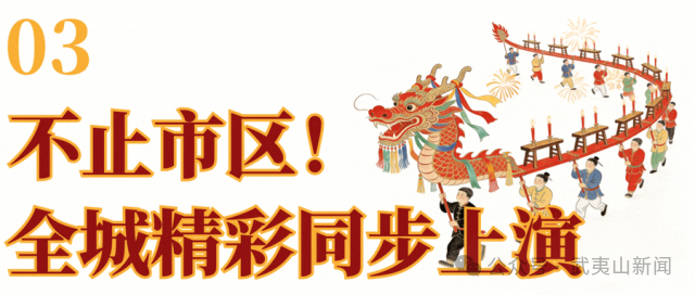 📷:吴智成 灯笼挂起来了,锣鼓敲起来了 街头巷尾,开始有人打听: “今年龙队几点走?从哪过?” 是的,全城期待的这一天,马上就到 3月3日(正月十五) 武夷山元宵大巡游,即将再次“灯”场!