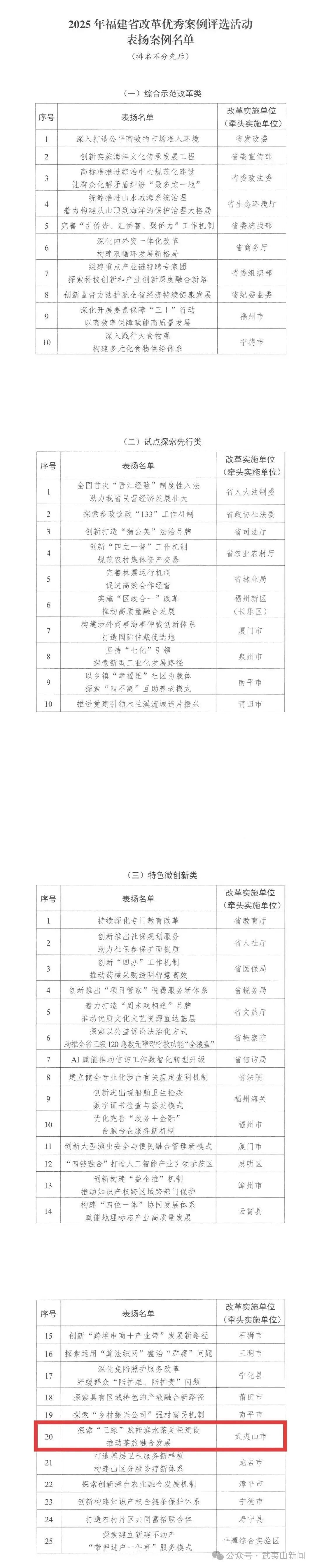 2025年福建省改革优秀案例