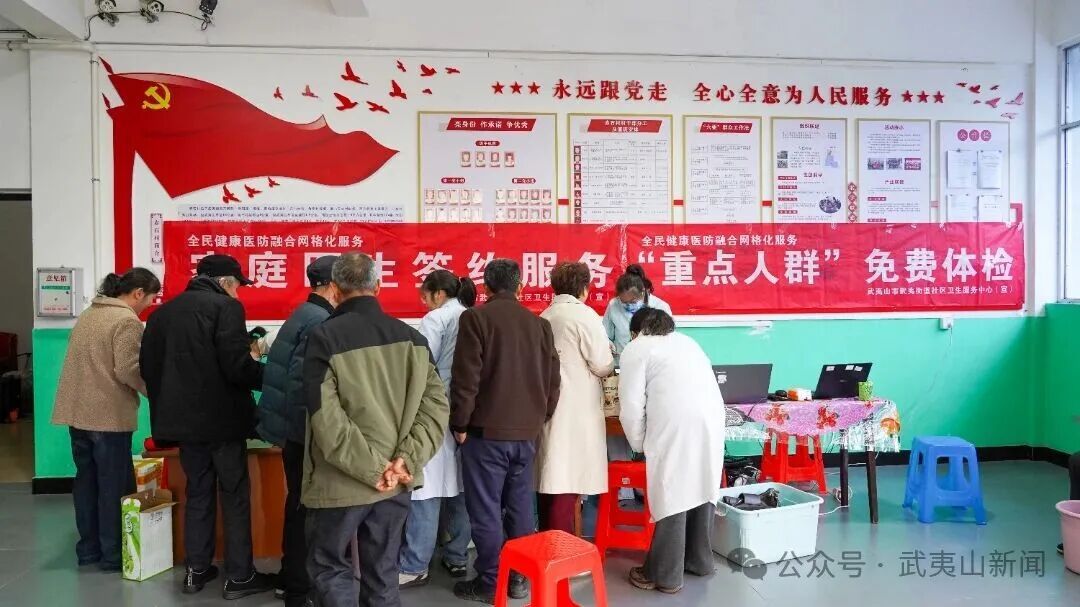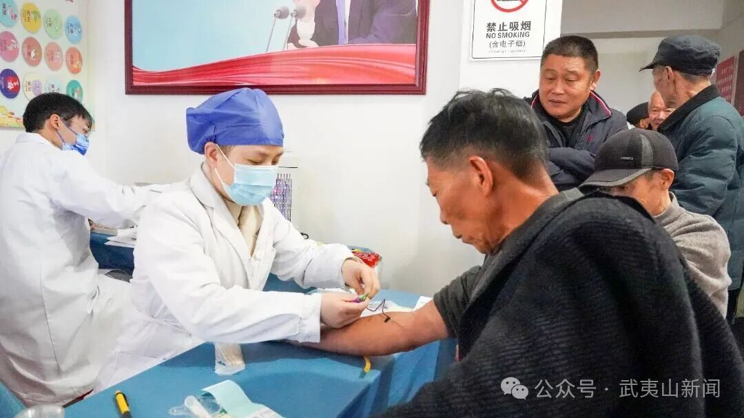 日前,武夷街道赤石村村部内暖意融融。武夷街道社区卫生服务中心将体检服务送到基层一线,为辖区65岁及以上老年人,以及原发性高血压、2型糖尿病、慢阻肺等重点人群提供免费健康体检。