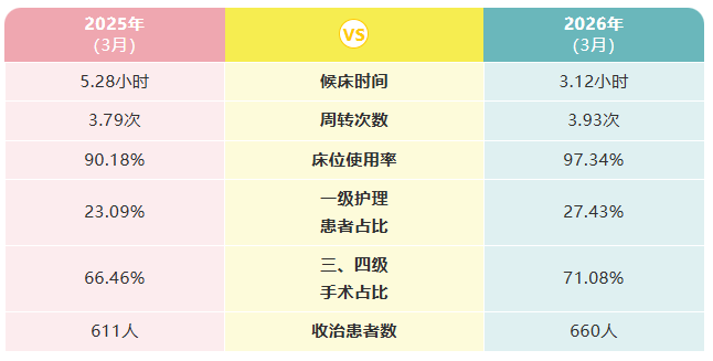 试运行数据显示,与2025年同期相比,2026年3月医院急诊患者平均候床时间由5.28小时缩短至3.12小时,床位使用率由90.18%提升至97.34%,收治患者数由611人增至660人,医疗资源利用效率与患者就医体验同步提升。