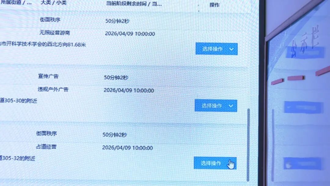 城市综合管理服务平台上,一条违规的线索被上报提醒,工作人员立即点开处理,发现市区新百家超市对面有摊贩未在规定区域摆摊,工作人员立即将线索发送至崇安街道执法中队。5分钟后,执法人员在现场告知摊贩摆摊的区域并协助搬离,随后通过平台上传处理后的对比照片,发现——上报——处理——反馈,一条违规线索就此完成处理闭环。