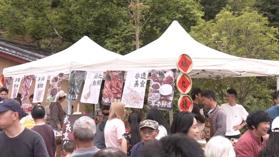 活动现场,除了精彩的“开山祭茶”仪式外,还推出采茶舞节目。舞者们身着茶乡服饰,还原采茶、提篮、归园等劳作场景,展现茶乡生产生活风貌。现场设置了两岸茶席体验区域,游客可在武夷岩茶席与台湾乌龙茶席自由品茗,免费品鉴武夷山特色小吃,在轻松氛围中感受茶文化与乡土风情。活动还举办了制茶体验、“长桌宴+篝火活动”等一系列丰富多彩的活动,游客们亲身参与体验到制茶乐趣,品尝到地道的武夷山茶,深入了解武夷山茶的历史底蕴、文化内涵和制作工艺。