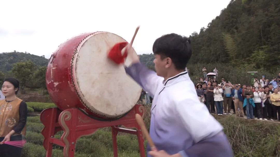 武夷山滨水茶足径——黄村木坜生态茶园内,锣鼓喧天、茶香弥漫。上午9时30分,开山祭茶活动正式启动,数百名茶农、非遗传承人、茶企代表及游客参与其中,共同见证武夷春茶季的启幕。