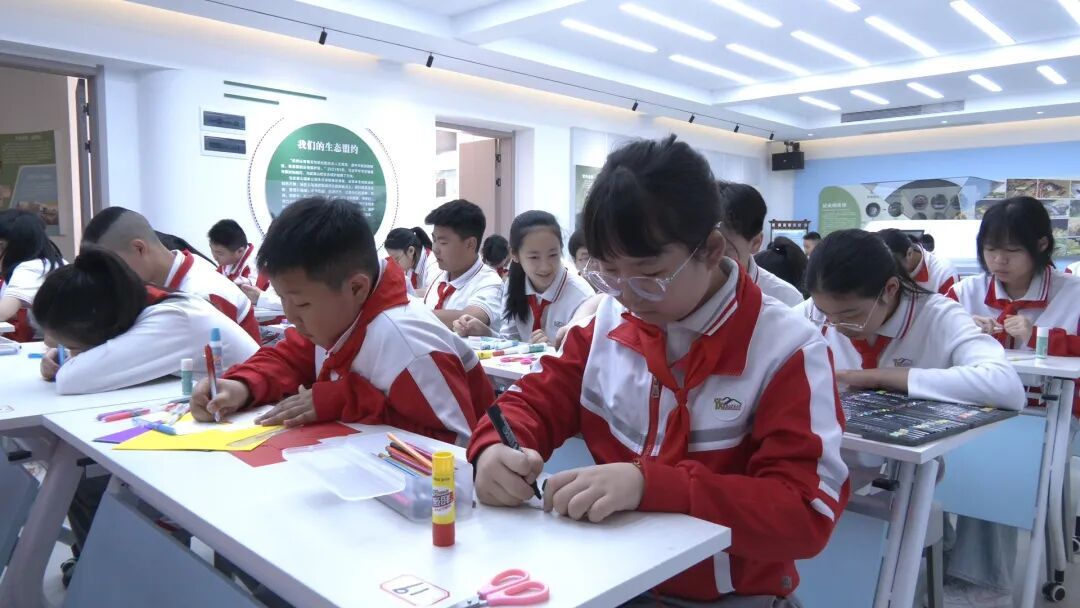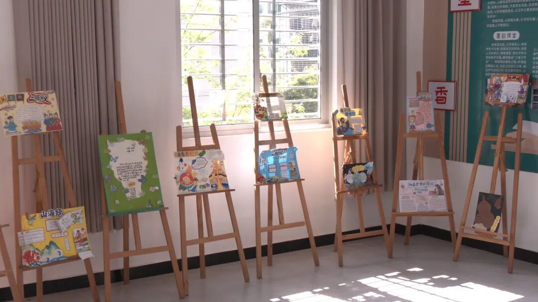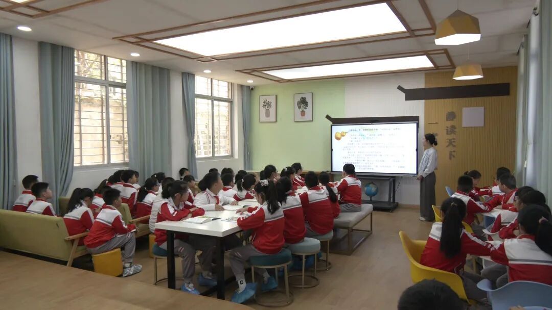 走在教学楼的长廊上,随处可见学生制作的阅读推荐卡,卡片上标注有书籍简介和阅读感悟。在教室内,阅读书签制作课正在进行,学生们用彩纸、画笔等材料制作阅读书签,裁剪、勾勒、装饰,一张张小巧的书签在指尖诞生,每件作品都承载着孩子们对阅读的期待。